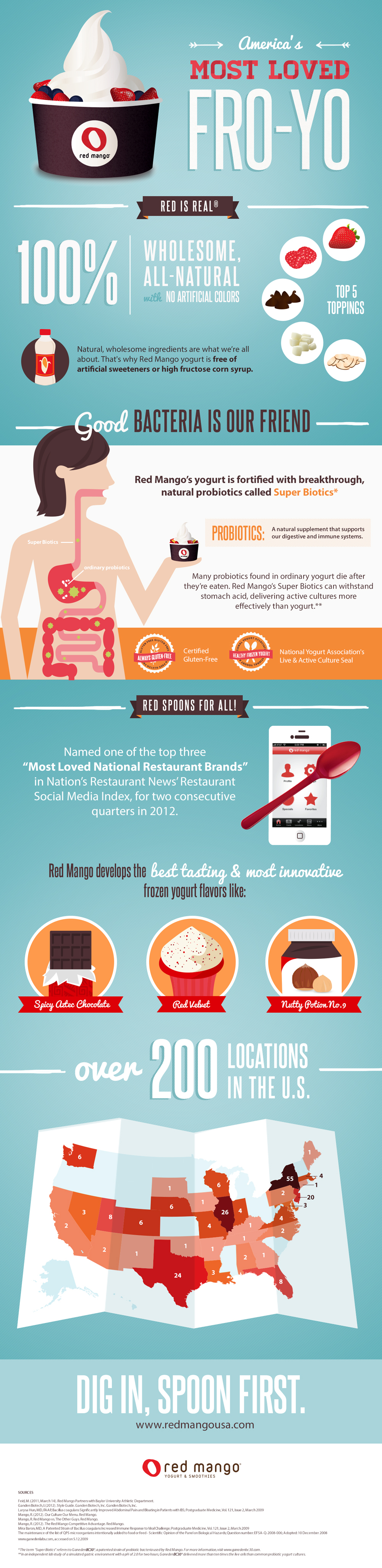 InfographicWant to know what's awesome? Red Mango. We got to work with the people behind America's most loved fro-yo to help illustrate what makes Red Mango so great. With healthy probiotics, tasty flavors like red velvet, and over 200 locations in the U.S., it's easy to see why America hearts Red Mango. Now let's go get some fro-yo!