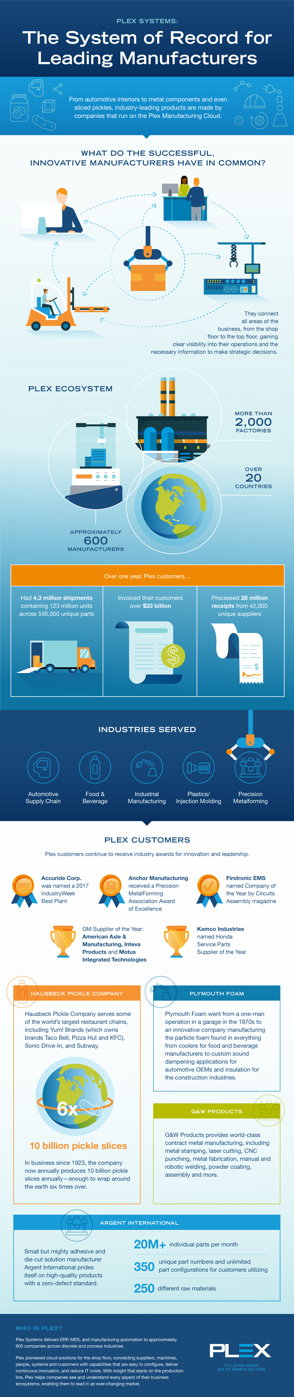 InfographicA visual look into how Plex is the top choice as a system of record for manufacturers across industries with customer reviews to boot.