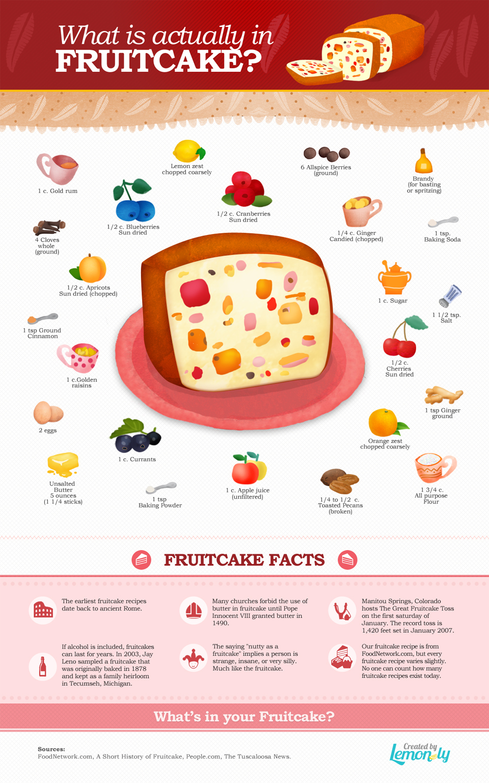 InfographicFruitcake has been a Christmas staple for decades. And it has been a mystery to people for just as long. The age-old question surrounding fruitcake is always, "What am I actually eating...?"