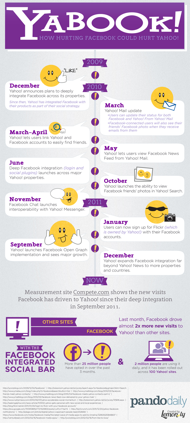 InfographicAs Yahoo! continues to throw punches at Facebook, it's interesting to note the relationship between the two companies. Lemonly partnered with Sarah Lacy and Pando Daily to help visualize their shared history and partnership.