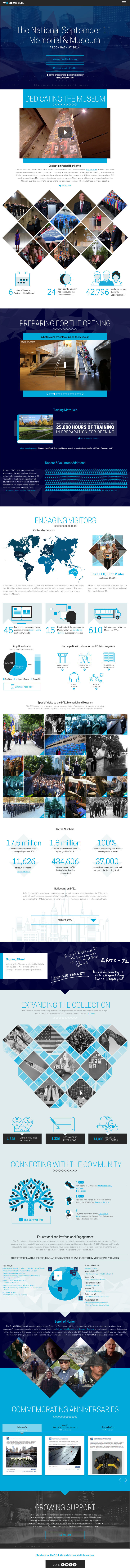 MicrositeThe milestones the 9/11 Memorial and Museum has reached have been possible with the support of caring individuals who share in their collective promise to honor and remember. In our latest project with the memorial, take a moment to experience their key moments since the opening of the 9/11 Memorial Museum in this one-of-a-kind interactive infographic annual report.