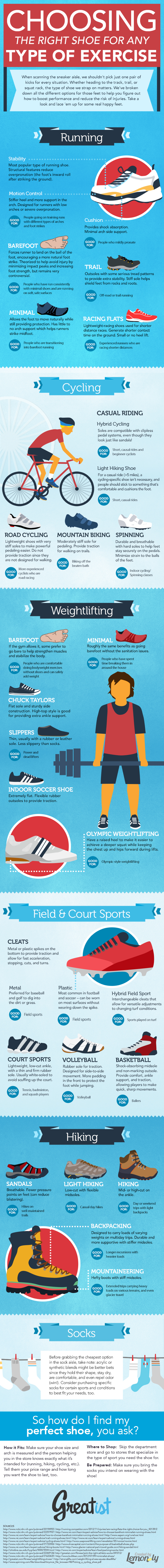 InfographicWhen you go from running to lifting or biking to basketball, you shouldn't just have one pair of exercise shoes. We teamed up with our fitness pals at Greatist to help you pick the best kicks for every type of exercise activity. Let's just say this infographic is a definite 'shoe-in'. (Ba-dum-ching!)
