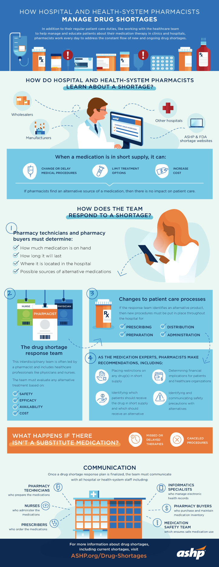 InfographicFor this infographic, we collaborated with ASHP to educate their audience about how hospital and health-system pharmacists address the constant flow of drug shortages.