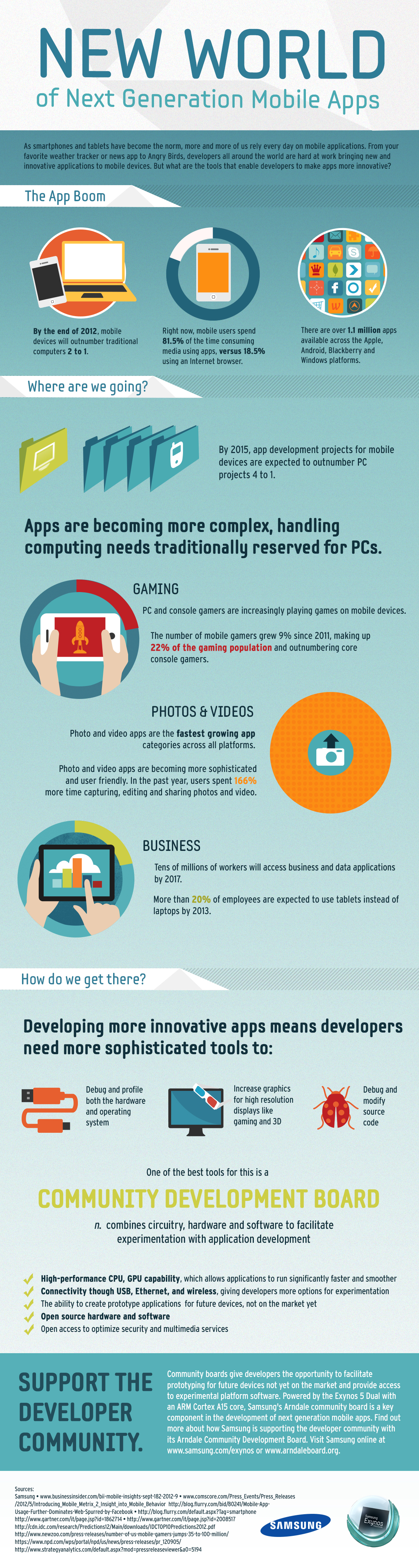 InfographicThere are over 1.1 million apps available across the Apple, Android, Blackberry and Windows platforms. As smartphones and tablets have become the norm, more and more of us rely every day on mobile apps. Check out current state of mobile apps and where they're going with our latest mobile apps infographic with Samsung.