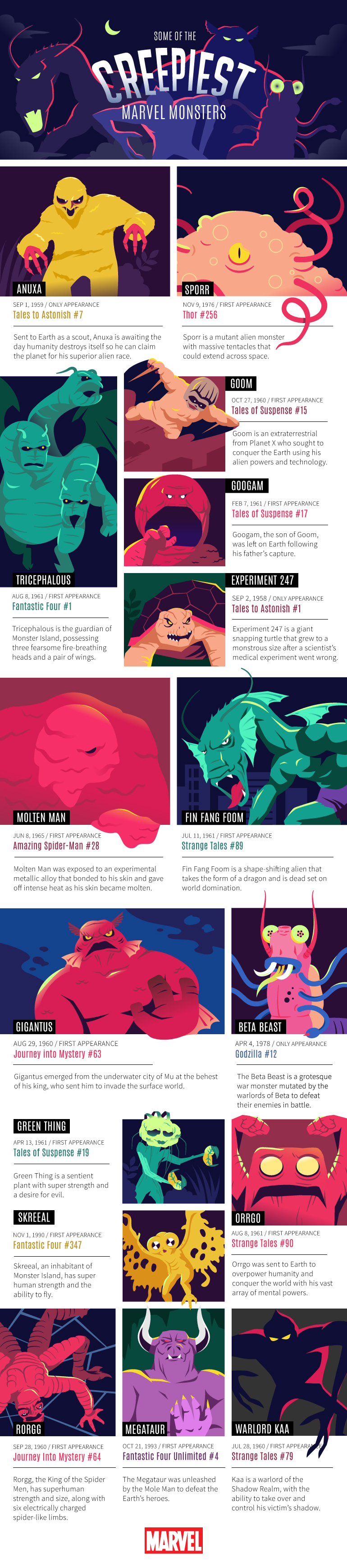 InfographicTo commemorate a howling Halloween, we worked with our friends at Marvel to assemble and illustrateĀ a list of the creepiest Marvel monsters ever.